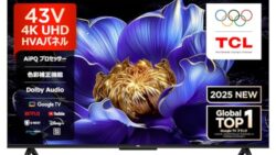 テレビ TCL 43V6C 4Kテレビ|2025年最新モデルの高画質&音質性能 4K液晶の高精細画質とDolby Audio搭載の音質にこだわる方へ。TCL 43V6CはWチューナー内蔵やAirplay2対応など機能充実でコスパ良好。2025年モデルの最新技術を今すぐ確認し、賢く購入しましょう。 2025/09/29 2025/10/07 テレビ