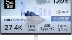 パソコン・周辺機器 Dell S2725QC-A 27インチ4Kモニターの最適選び方と特長 Dell S2725QC-A 27インチ4KモニターはIPS非光沢・無輝点5年保証付き。USB Type-C搭載で快適接続、現在Amazon限定で価格もお得。高画質かつ高性能なモニターを求める方に役立つ最新情報です。 2025/10/03 パソコン・周辺機器