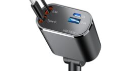 【2025年新進化 総139W・急速充電】シガーソケット USB 車 充電器 巻き取り式 4 in 1 カーチャージャー 4台同時使用 ケーブル 2本 Type-C/Lightning DC12/24V 車対応 多機種に対応 車載 カー用品 車用品 コンパクト(グレー) 【2025年新進化 総139